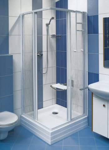 - Zkompletované rohové kouty SRV2 S je možno doplnit pevnou stěnou (PSS/APSS) a vytvořit tak sprchový kout tvaru "U".