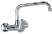Kvalitní a odolná keramická kartuše KEROX 35 mm s prodlouženou zárukou 7 let. Prvotřídní povrchová úprava. Dřezová nástěnná baterie s roztečí 150 mm s horním vývodem a otočným trubkovým ramenem s délkou 255 mm.