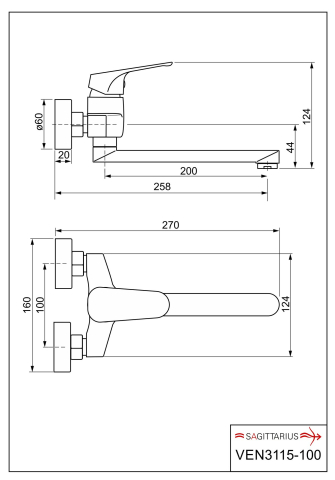 Sagittarius VENUS, dřezová stěnová baterie, rozteč 100 mm, ramínko 200 mm