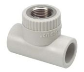 PPR T-kus s kovovým závitem vnitřním pro spojování polypropylenových trubek svařováním, určeno pro závitové spojení v místě dělení trasy.
